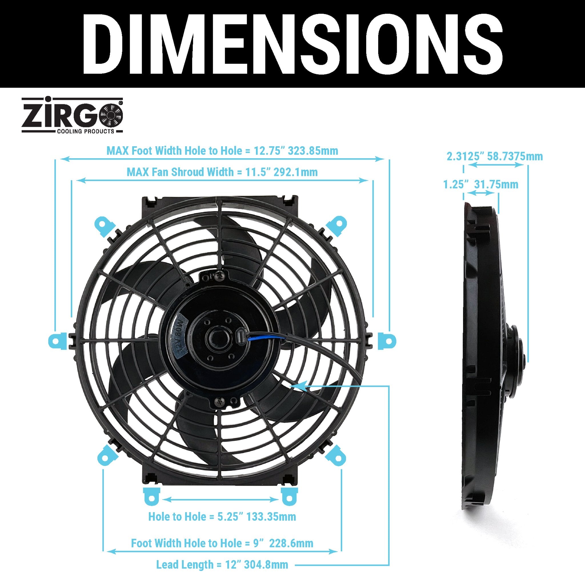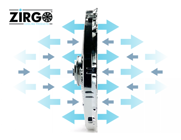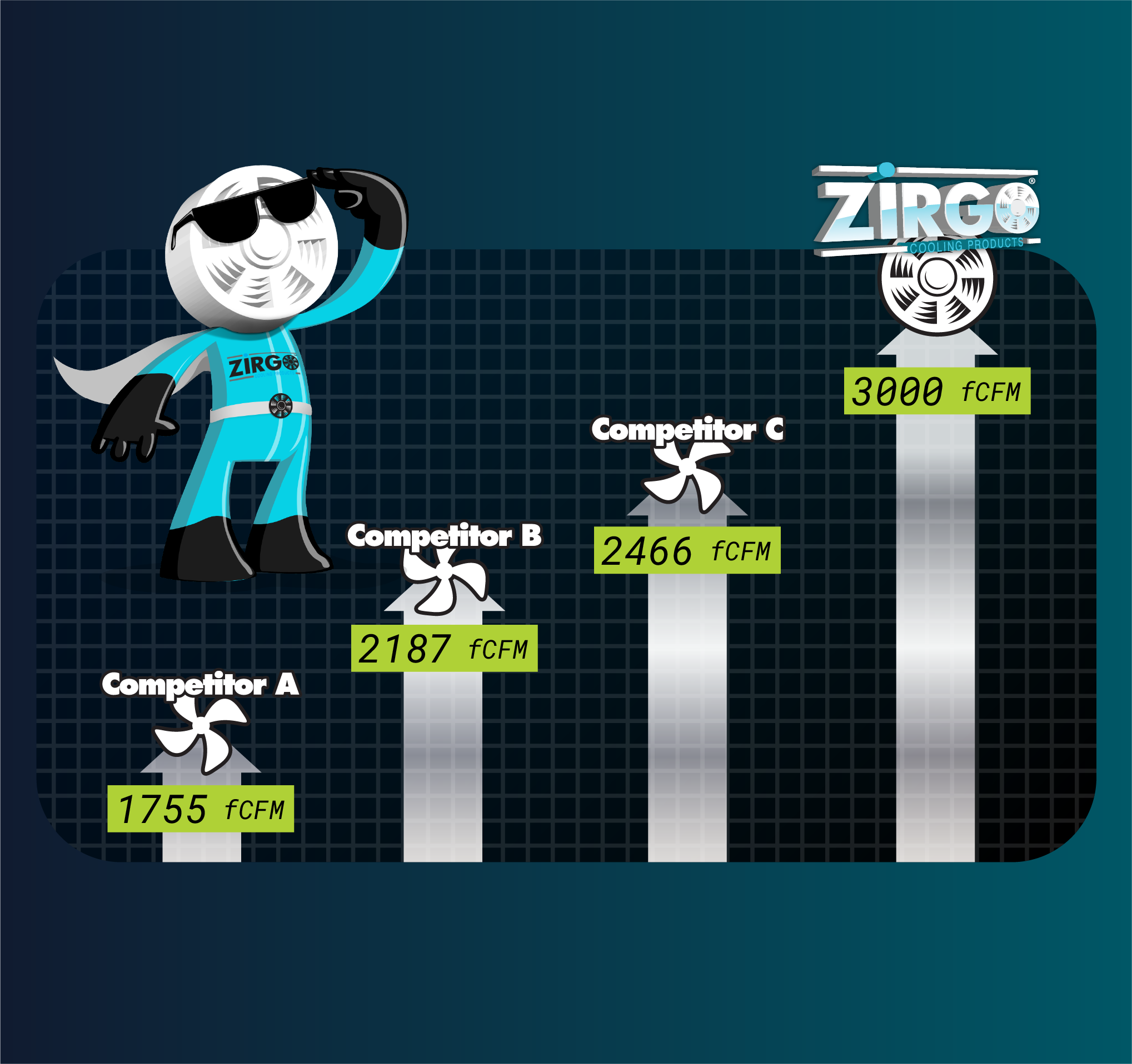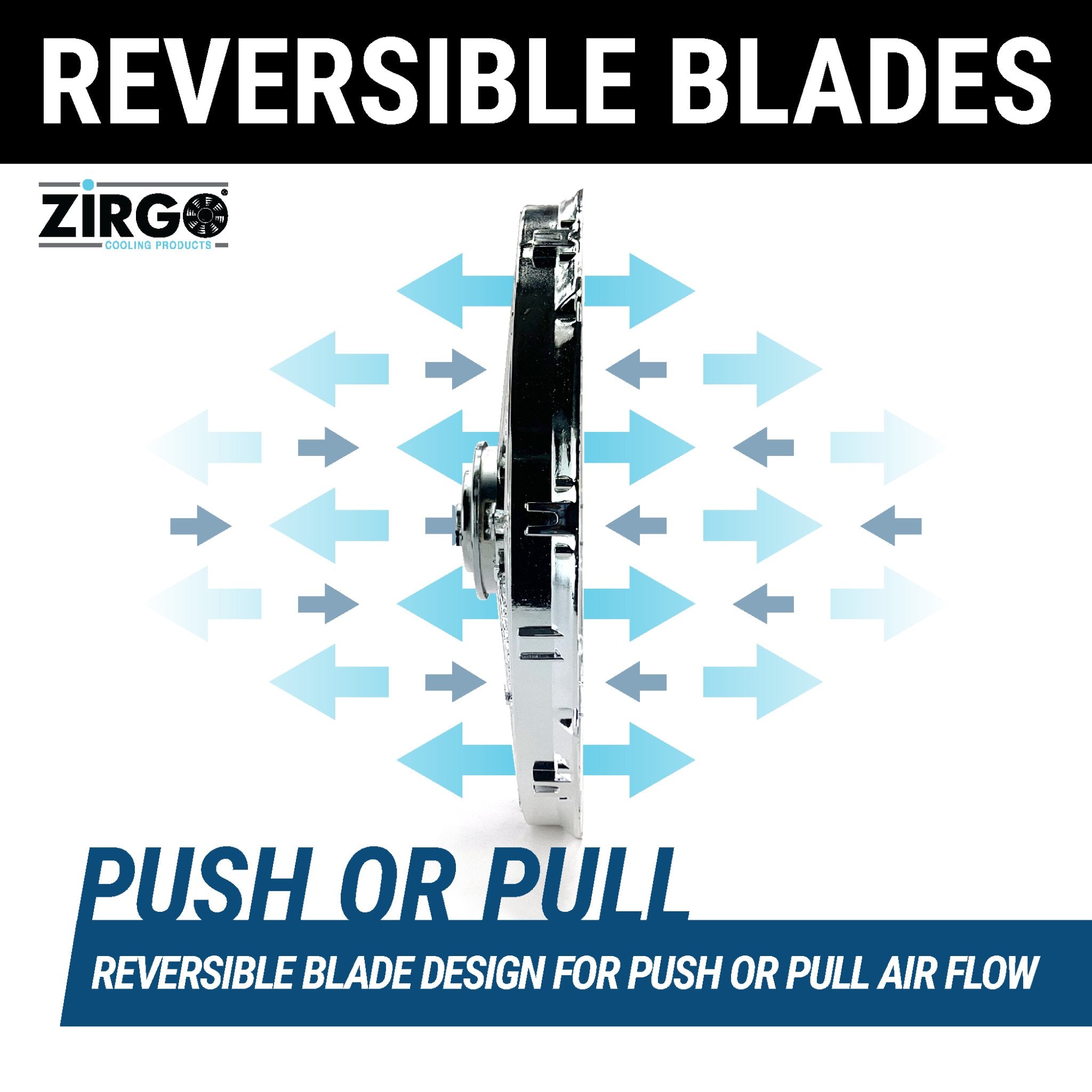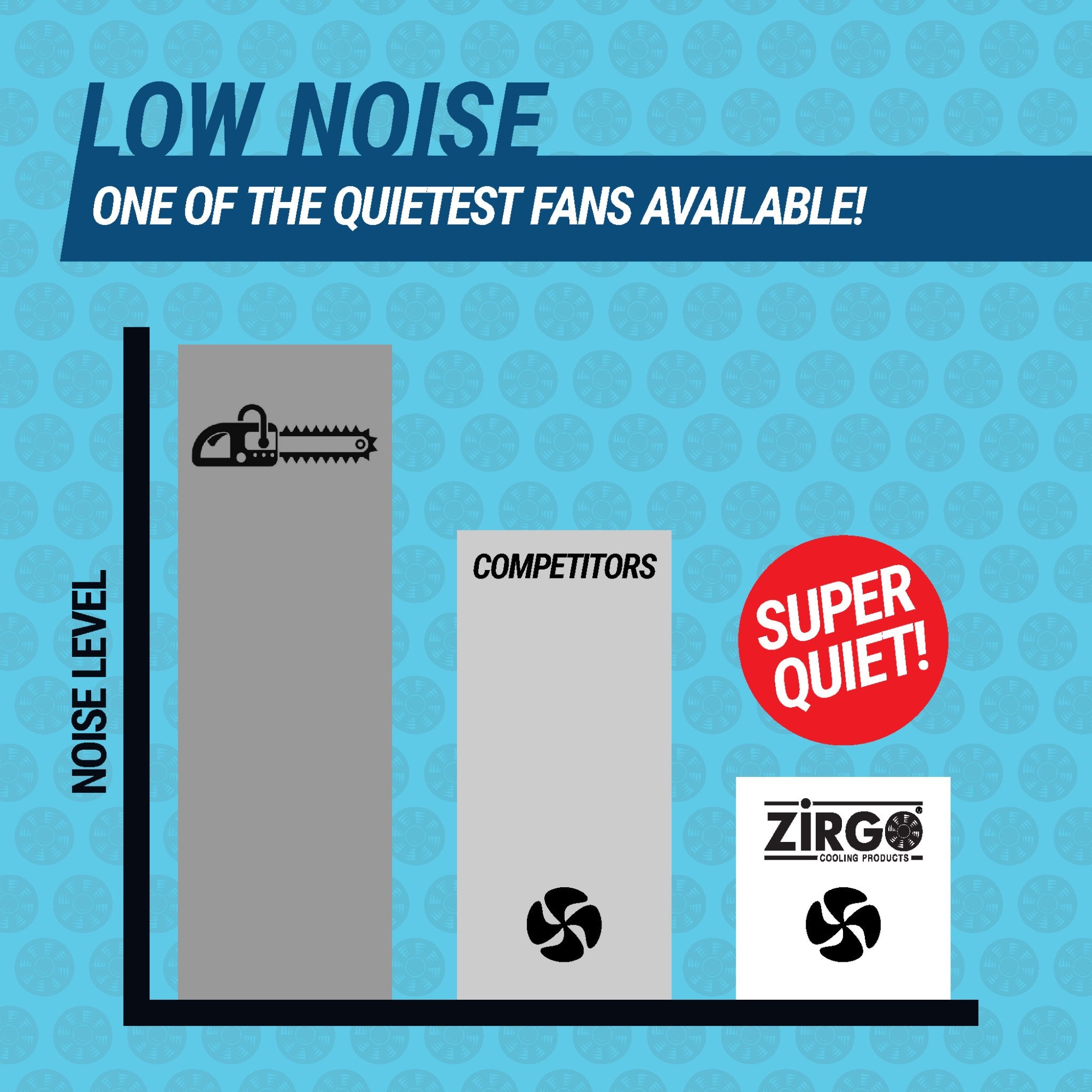 16" Black Zirgo 3000 fCFM High Torque S-Curved Blade Performance Cooling Fan DC