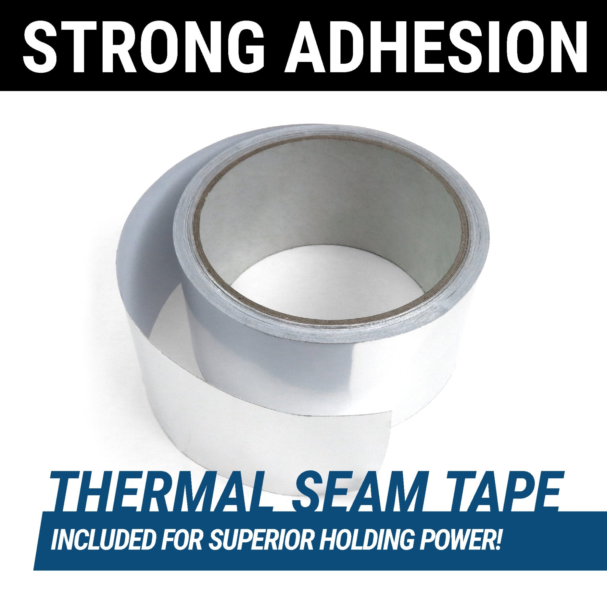 Our thermal seam tape is great for taping seams and providing a reflective heat barrier. The foil design with acrylic adhesive won't easily puncture or tear. It works great in warm and cold weather and is flame retardant.
